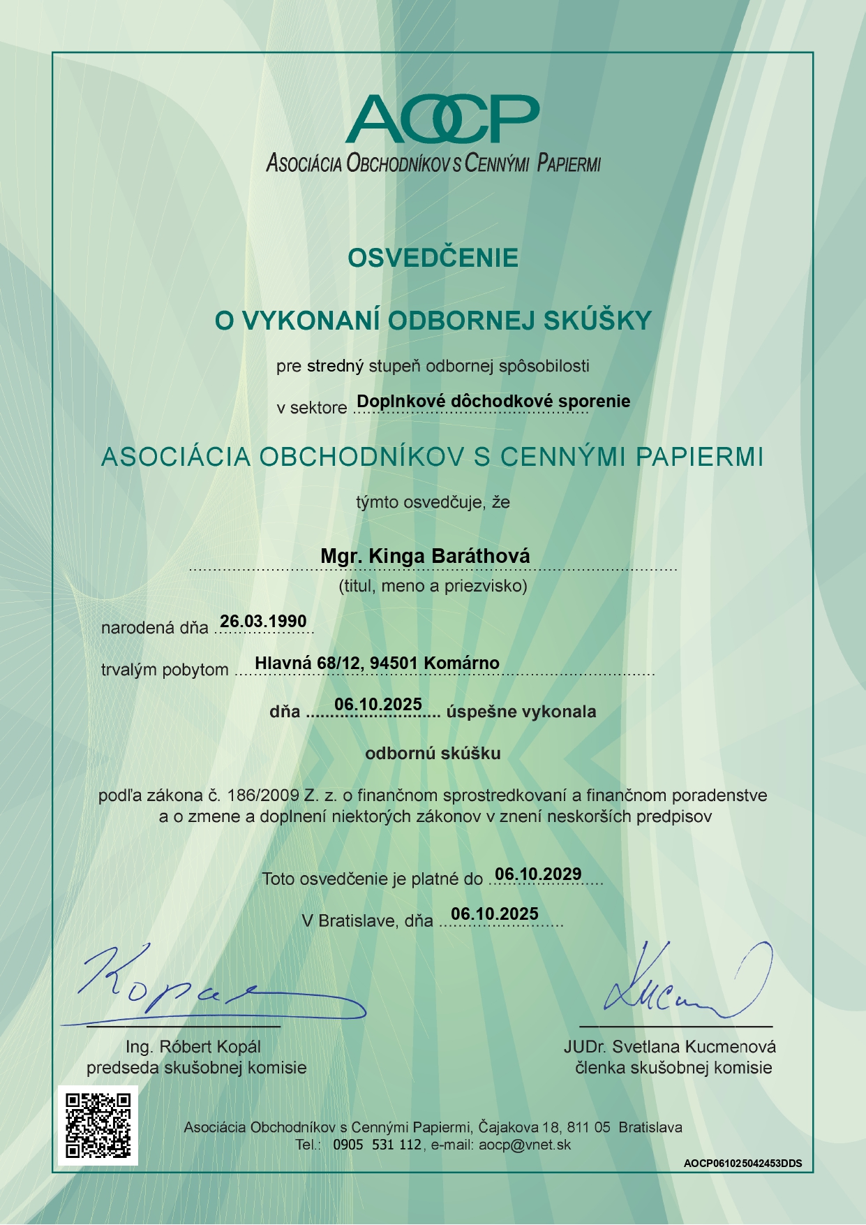 Második nyugdíjpillér tanúsítvány